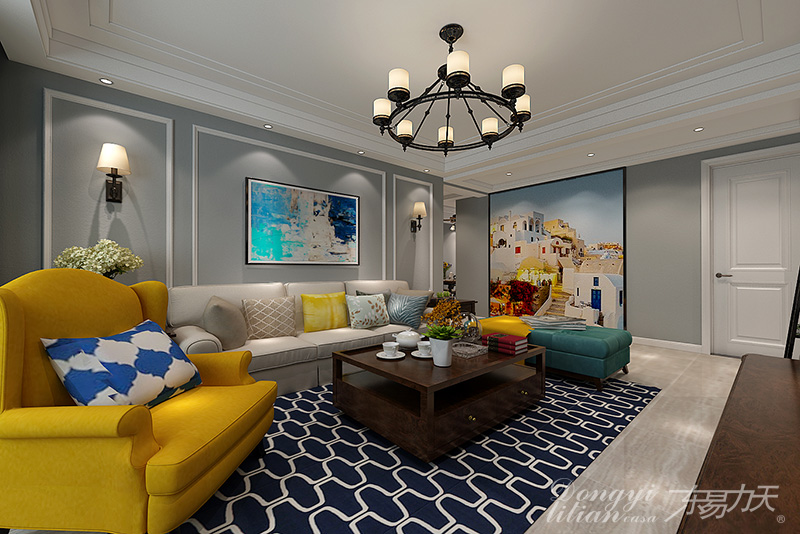 2019-01-10郑州装修公司|宏光蓝水岸135㎡简欧。以简洁的表现形式来满足人们对空间环境那种感性的、本能的和理性的需求。...