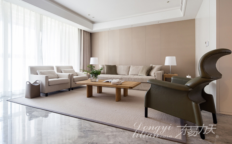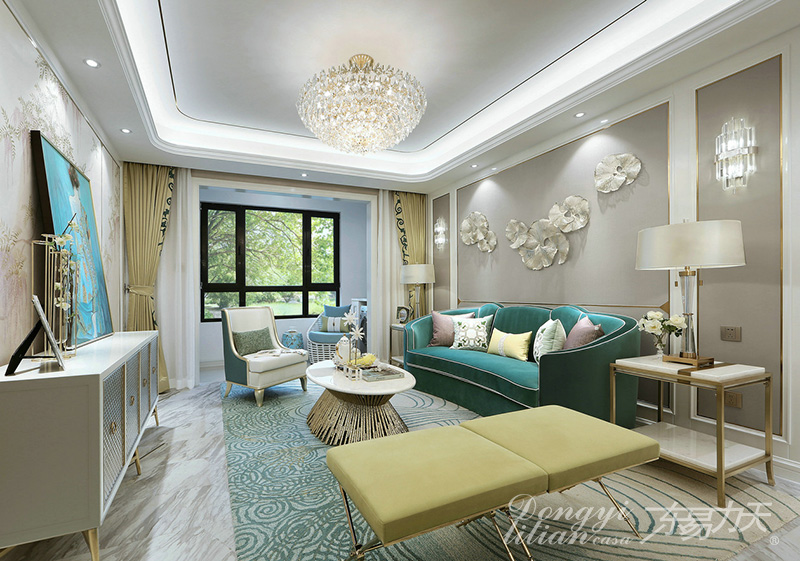 客厅沙发背景墙饰,选择了凸起的荷叶饰品装饰,融入现代东方设计语言,通过柔美淡雅的装饰与自然清新的色彩,让归家的人洗去工作后的疲惫,享受家的惬意与温馨。...