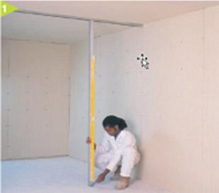 东易力天装饰 石膏板隔墙施工图解: 1.先安装沿顶龙骨,再用一根竖向龙骨和水平尺对沿地龙骨进行定位,膨胀螺丝固定间距600mm,端头间距50mm; 2.安装可耐福C型竖向龙骨以形式隔墙...