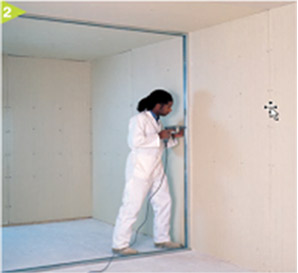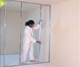 4.将可耐福石膏板水平向安装在C型竖向龙骨上;