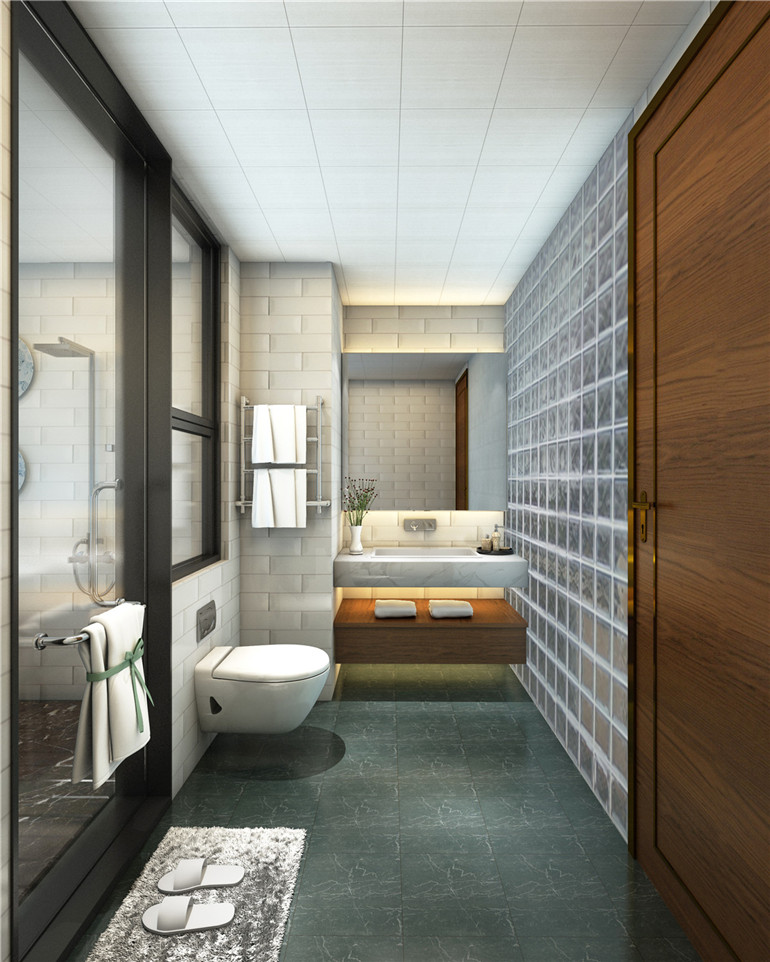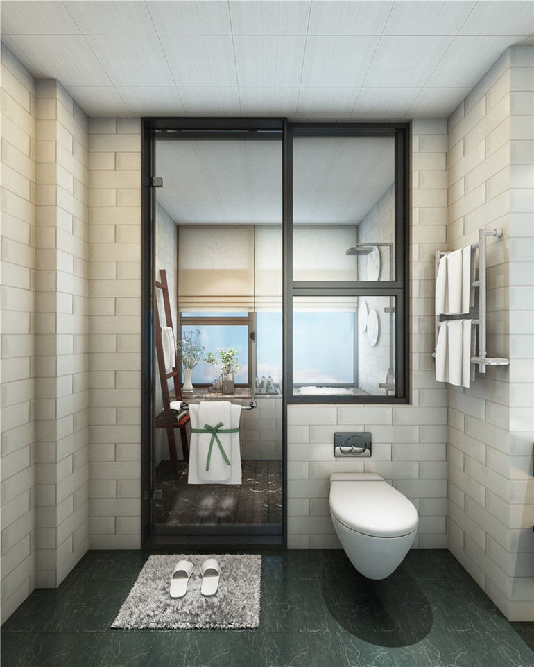 2.原始户型过道较暗,把客卫墙面改为有机玻璃透光不透明,*大限度利用自然光。